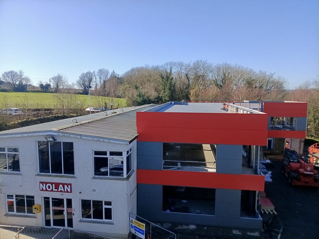 A view of our expanding Nolan head office in New Ross, Ireland — designed to global logistics standards, powered by cutting-edge technology, and built around a centralised control tower to support our growing European and global operations.
